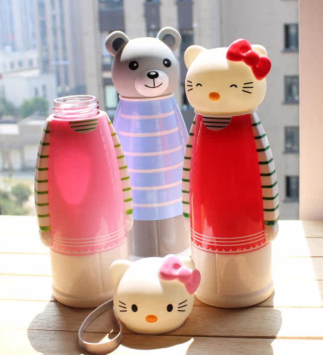 kitty水杯可爱卡通玻璃杯儿童学生带盖手提杯子防烫防摔杯随手杯