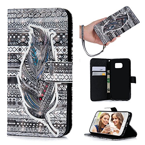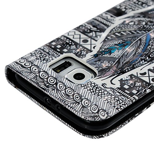 S6 Case,Samsung Galaxy S6 Case - Wallet 3D Effect Colorful Print Patterns Premuim PU Leather Soft TPU Inner Cover with Wrist String & Magnetic Clip & ID/Credit Card Holders by Badalink