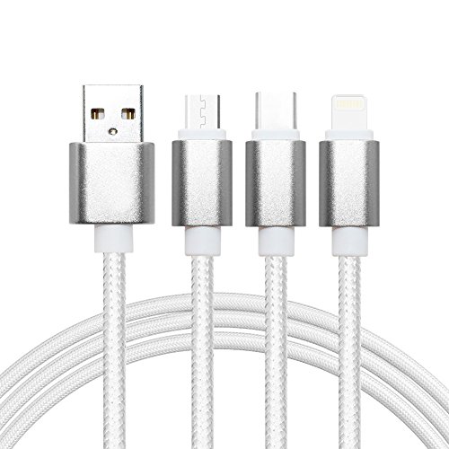 -. Title : ALLCACA 3 in 1 Charging Cable Nylon Braided Fast Charging Cable Universal Charger Cable, Suitable for iPhone, Android and Type-C Phone, Silver
