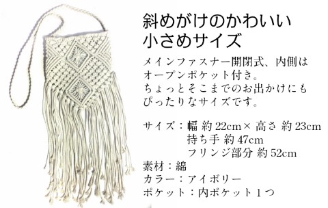 サイズ:幅 約22cm×高さ 約23cm/持ち手 約47cm/フリンジ部分 約52cm