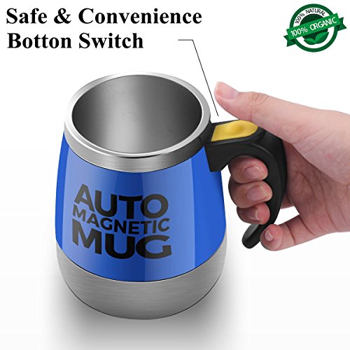[Update]Self Stirring Coffee Mug - Upintek Magnetic Self Stirring Mug Cup, Electric Stainless Steel Automatic Self Mixing Cup and Mug for Traveling Morning, Office Men and Women 450ml/15.2oz(Blue)