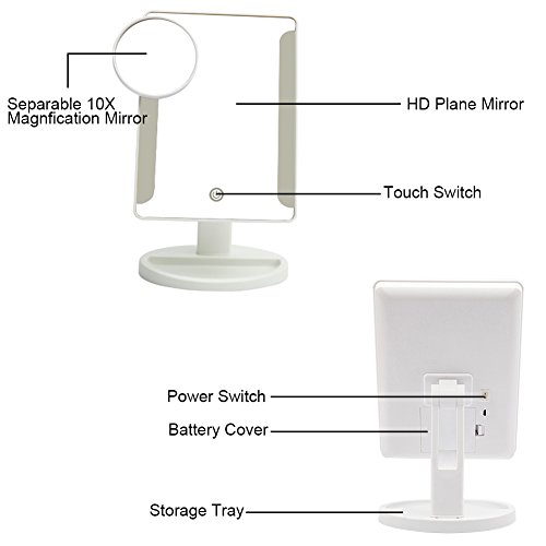 [Portable Touch switch] The mirror included led lights that provides natural light when makeup. Touch the smart touch switch,the makeup mirror lights will turn on. Please turn on the switch behind the mirror first