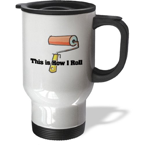 3dRose tm_102551_1 This is How I Roll Paint Roller Painter Design Stainless Steel Travel Mug, 14 oz, White