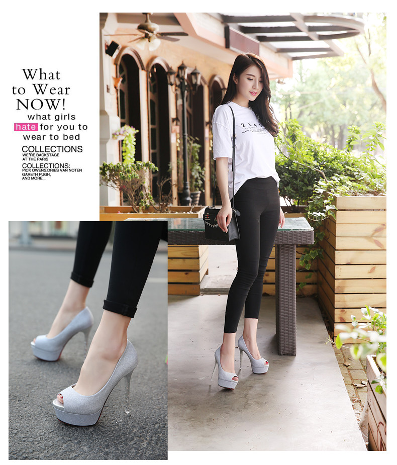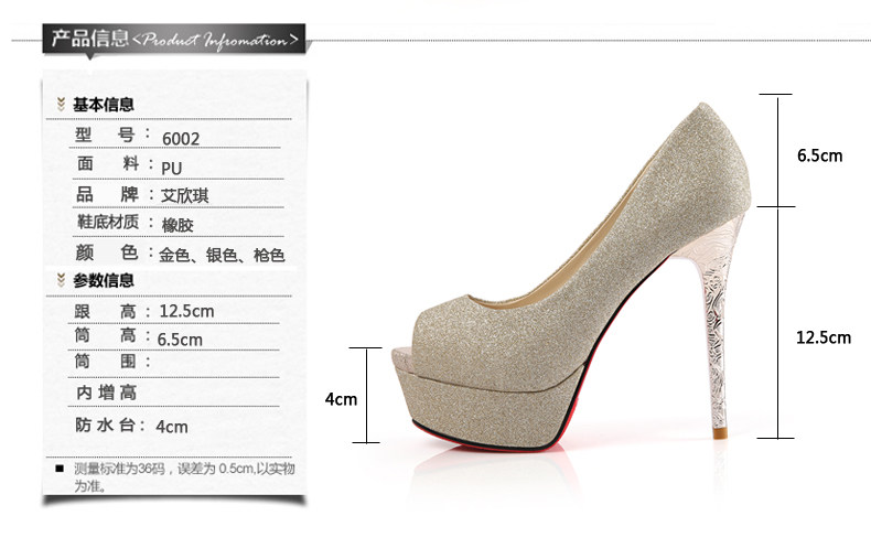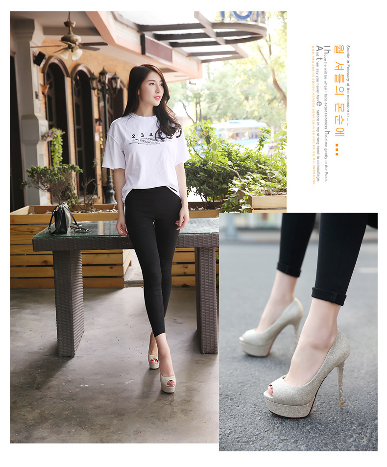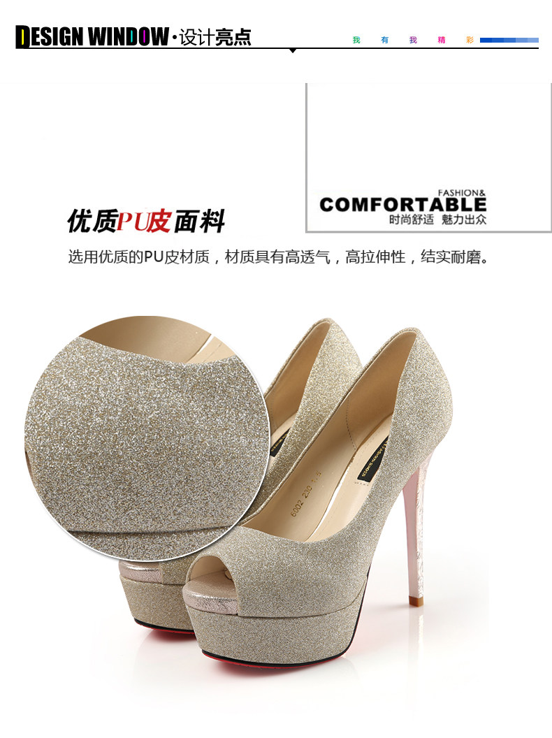 韩版春秋鱼嘴超高跟亮片细跟鞋浅口凉鞋单鞋金色婚鞋女鞋