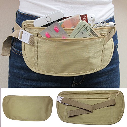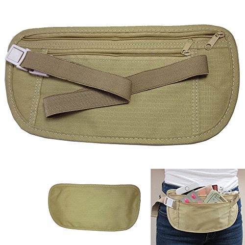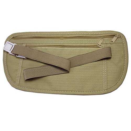 ** Items displayed in the pictures are not included ** This Khaki money belt features 2 zipper pocket closures and is designed to be lightweight, so it is convenient for you to carry and keep hidden items during your trips. Dimensions: 10.30" W x 5.30" H approximately and comes with an easily adjustable elastic waist strap to fit your desired size. Keeps valuable items safely hidden under your clothes; perfect for traveling, sports, daily bases and more!