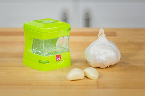Studio : Kitchen Innovations Publisher : Kitchen Innovations Product Description The Kitchen Innovations Garlic-A-Peel tool makes it fast and easy to peel, slice, dice or grate garlic without leaving an odour on your hands. Simply peel garlic using the rolling silicone peeler, add garlic to the top of the tool and press through one of the 2 two interchangeable sharpened stainless steel blades, into the storage container. Or, use the micro grating surface on the bottom of the clear container to create a garlic paste. There is a removable grid for easy cleaning by hand or in the dishwasher. Snap the extra blade into the bottom of the unit next to the silicone peeler for convenient storage. 0
