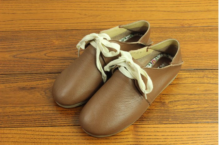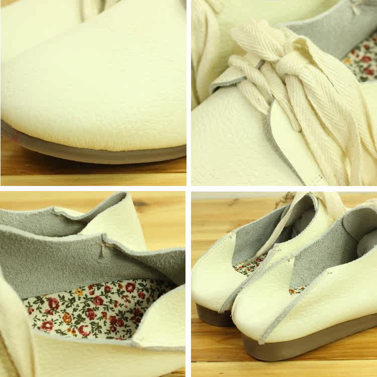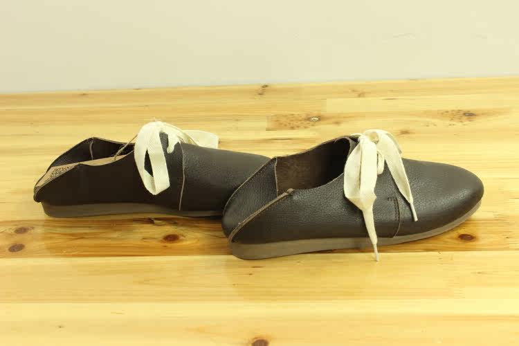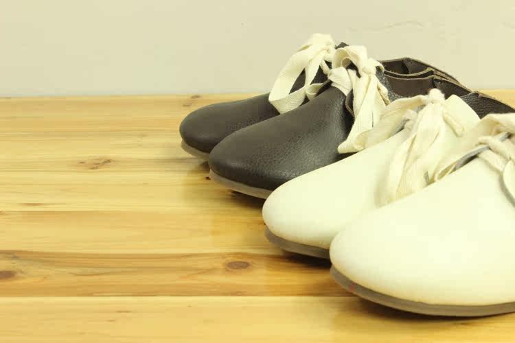 新款日系真皮复古平底懒人鞋手工牛皮单鞋两穿系带女鞋单鞋