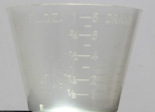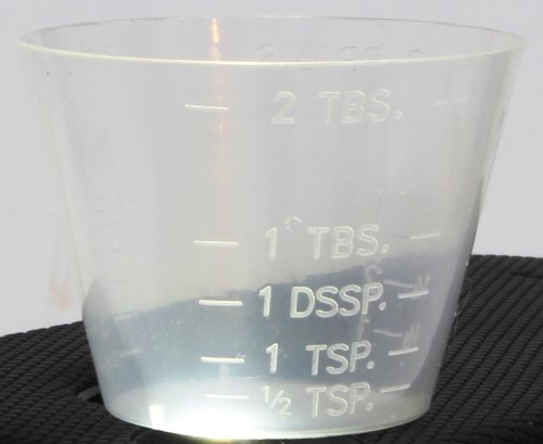 -. Feature : Calibrated in cc (mL), ounces, drams, teaspoons and tablespoons / Graduated in 5cc and 1 dram increments / Manufacturer Claims Unbreakable, but we will call it Break-resistant polypropylene / 1 oz (8 drams) / 30cc