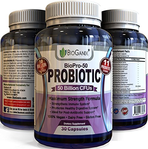 -. Binding : Health and Beauty -. Brand : BioGanix -. Feature : Ultimate Probiotic Supplement for Weight Loss and Digestive health / Best Potency with 50 Billion CFU's and 11 active Strains / Highest Quality -. Label : BioGanix -. Manufacturer : BioGanix -. PackageQuantity : 1 -. ProductGroup : Health and Beauty -. ProductTypeName : HEALTH_PERSONAL_CARE -. Publisher : BioGanix -. Studio : BioGanix -. Title : BIOPRO-50 Ultimate Probiotic Supplement with 50 Billion CFUs & 11 Strains - Dr Rated Best for Women, Men & Children - Raw Vegan & Dairy Free , Supports Colon & Digestive Advantage + Gas & Constipation