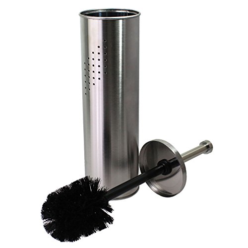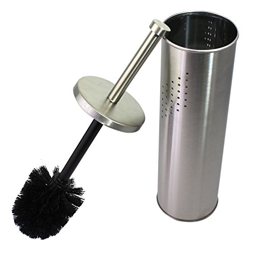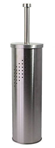 JustNile Stainless Steel dull finish Matte Chrome Toilet Brush with Vented Hideaway Canister Holder Set - Round Flat Handle Tip