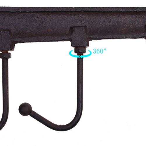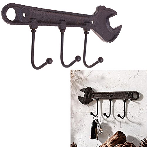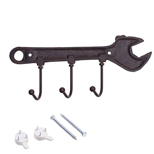 Kloud City Antique Spanner Shaped Cast Iron Wall Key Hanger with 3 Hooks for Coat Hat Key Towel Clothes Apron Rack Wall Mounted Vintage Hook Home Décor 10” with Screws and Anchors