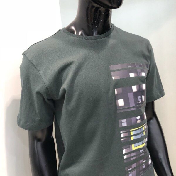 18 S/S 여름 신상.남자 건물 전사그래픽(오버핏) 티셔츠 입니다.사이드에 건물 전사 프린트로 포인트를 준 스타일리쉬한 느낌의 라운드넥 티셔츠 입니다.
