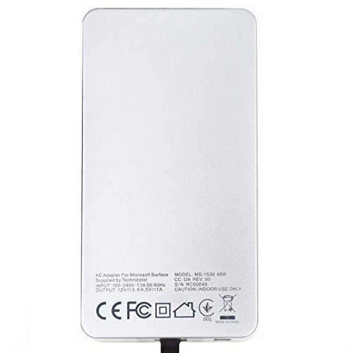 KINGDO Surface Power Supply Adapter 48W 12V 3.6A for Microsoft Surface Pro 2 & Pro 1 Tablet with 6Ft Power Cord Including a storage pouch bag (Silver)