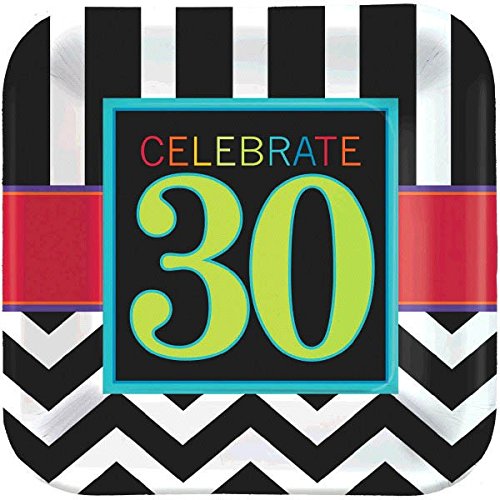 Must-Have Chevron and Stripes 30th Birthday Party Square Luncheon Plates Tableware, Pack of 8, Multi , 7" Paper