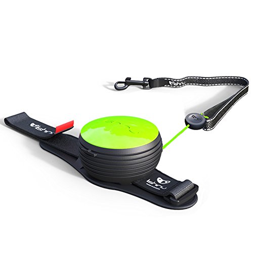 Binding : Apparel Product Description Hands free retractable dog leash. Use on the wrist or hand. Integrated handsfree auto-lock, works exactly like a seat belt. Perfect for running with the dog. Has a changeable cover for customisation. Hand-loop for greater control of the dog. Lead extends up to 3m. For dogs weighing up to 66lbs. Neon Green is reflective. 0
