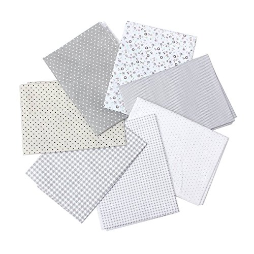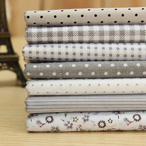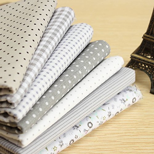 KINGSO 7PCS Cotton Fabric Bundles Quilting Sewing DIY Craft 17.7x17.7inch Gray