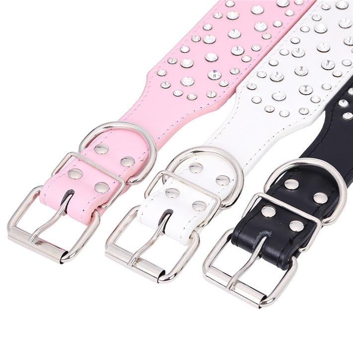 3 color available: Black, White, pink 2 inch wide full rhinestone Studded bling big dog collar beautiful design as the pictures show, 5 holes adjustable.
