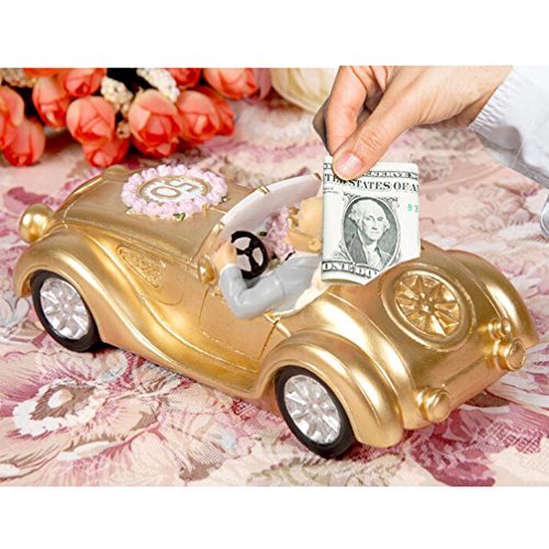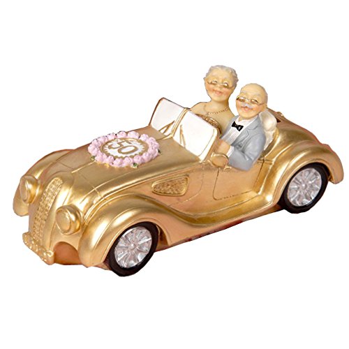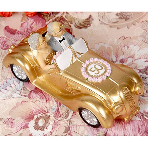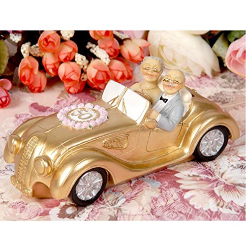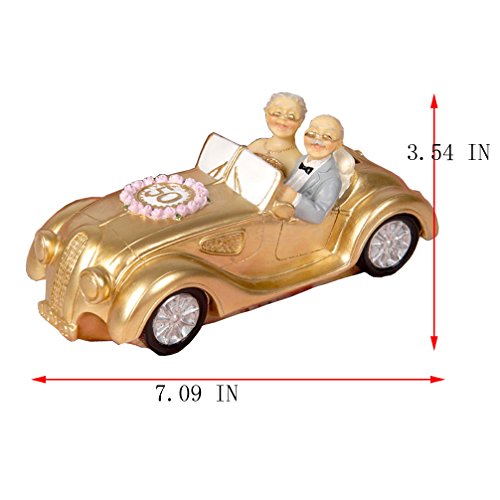 50th Anniversary Gift Polyresin Statues - Wedding Car Elderly Couple Figurines Collectibles for Parents (Commemorative Coins Bank)