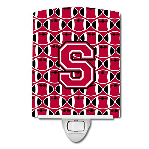 Caroline's Treasures Letter S Football Crimson and White Ceramic Night Light, 6 x 4", Multicolor