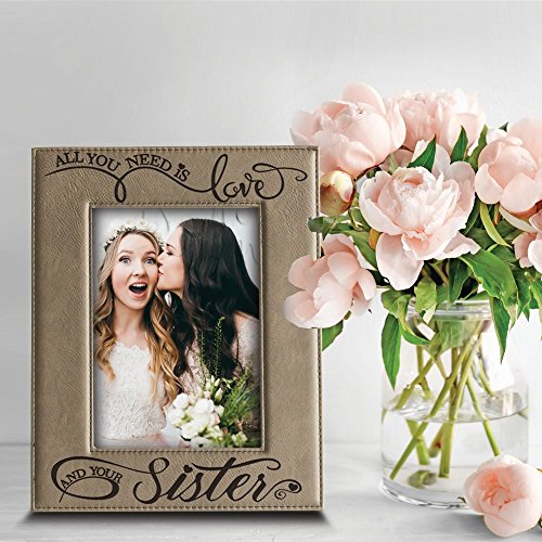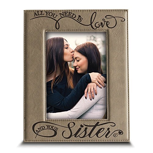 Bella Busta - All you need is " LOVE " and your "SISTER" -Engraved Leather Picture Frame- gift for sister (5"x 7" Vertical)