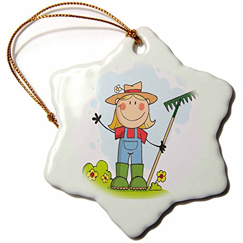 3dRose orn_118628_1 Cute Stick Figure Girl Gardener Farmer-Snowflake Ornament, Porcelain, 3-Inch