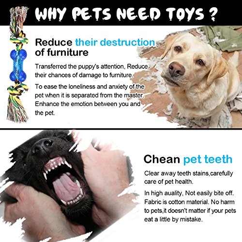 Feature: -Made of Safe, Non-toxic and Durable Cotton Fiber, in heavy-duty construction and long-lasting strength. -Braided cotton toys assists to clean up dirt hidden in dog teeth and train biting force by contact friction when your pets are chewing, Effectively promoting the healthy growth of teeth and gums. -Satisfy dogs' instinctual needs and strengthen the relationship between dogs and their owners. Alleviate separation anxiety, promote proper chewing behavior and correct misbehavior. -To solve the pet bite things randomly, barking, improve restlessness and increase a sense of security of dogs. -Contains 10 specially selected quality dog toys, meet you dog's curiosity as well as enrich his/her playing items.