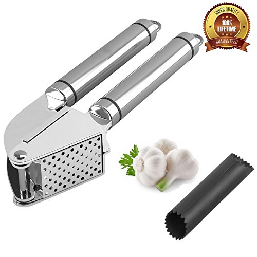 Soild Stainless Steel -The garlic press is made from solid premium stainless steel, and the peeler tube from tough FDA approved silicone, these cooking gadgets will last as long as you need them,and be your favorite addition to your kitchen .