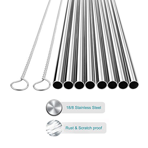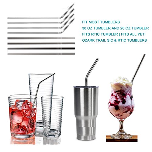 Xubox Stainless Steel Drinking Straws, FDA-Approved Extra Long Metal Straws for 30 oz Tumbler and 20 oz Tumbler Cold Beverage Fits RTIC Tumbler | Fits All YETI Ozark Trail SIC & RTIC Tumblers Set of 8