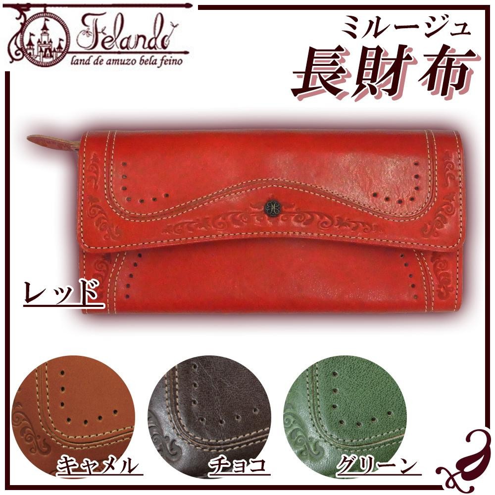 イタリア革の持つ特性を大切に、革らしさをさりげなく表現できるテクニックを用いて小さな金具をポイントに丁寧にまとめあげたミルージュシリーズです。外側にもポケットがあり、収納力バツグンで使いやすい財布です。 |