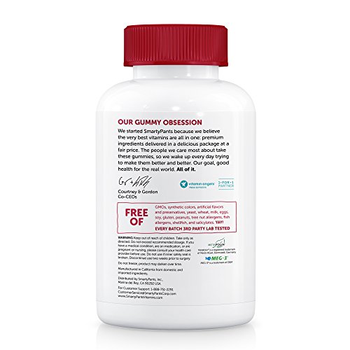 SmartyPants Kids Complete is more than a multivitamin. We’re the galaxy’s best tasting gummy vitamin, packed with essential nutrients, including vitamin D3, and omega 3 fish oil – all in one. We use premium ingredients and include the forms of nutrients that are easily absorbed by the body whenever possible. SmartyPants are non-GMO and allergen-free, with no synthetic colors, sweeteners, flavors, or preservatives. Each batch is 3rd party lab tested. For every bottle sold, we make a 1-for-1 nutrient grant to Vitamin Angels. SERVING SIZE IS FOUR GUMMIES – since we’re packed with such large amounts of nutrients and fish oil, we spread them out over a couple of gummies so there’s ZERO fishy or vitamin-y taste. Please always refer to the supplement facts and ingredient section listed on the package label for information related to the purchased product. Actual product packaging and materials may contain different information than what is shown on this page.Feature