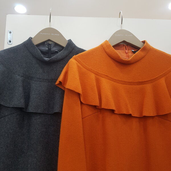 어깨프릴원피스예요~울소재라따뜻하고 여성스러운 원피스예요