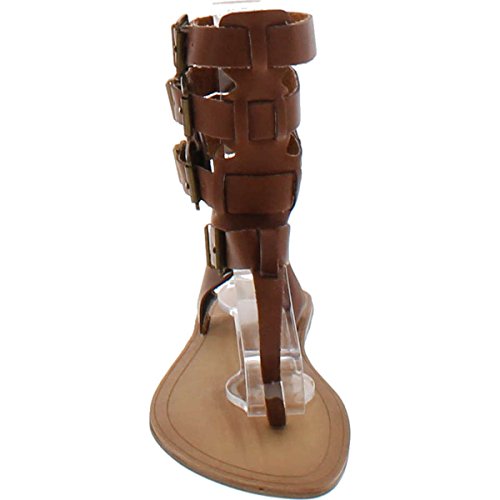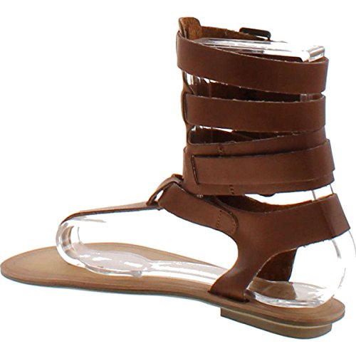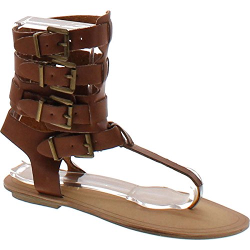 Liliana DB52 Women Leatherette Strappy T-Strap Gladiator Thong Sandal - Cognac