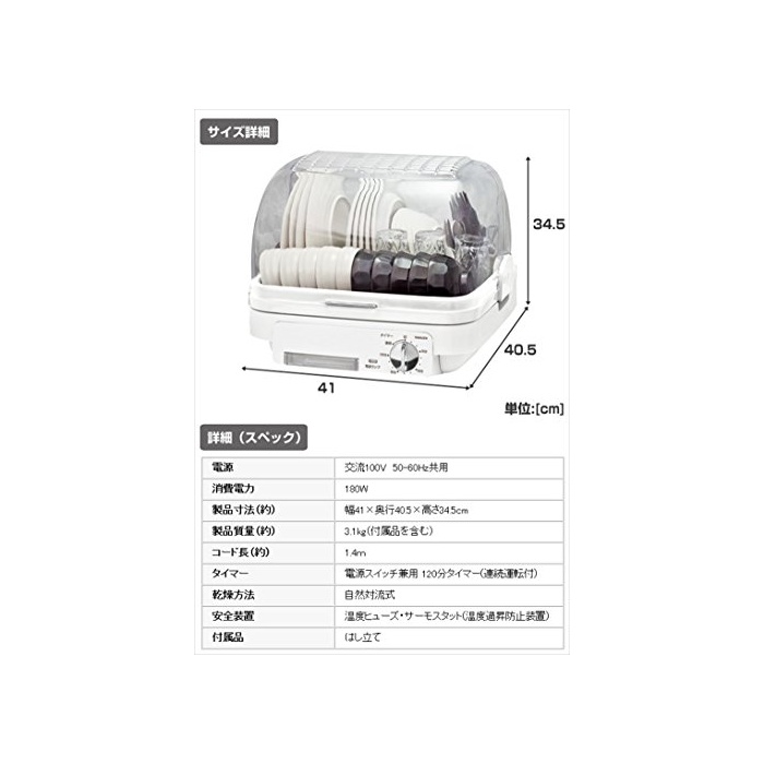 원본상품명: 山善(YAMAZEN) 食器乾燥機 (5人分) 120分タイマ?付き YDA-500(W)