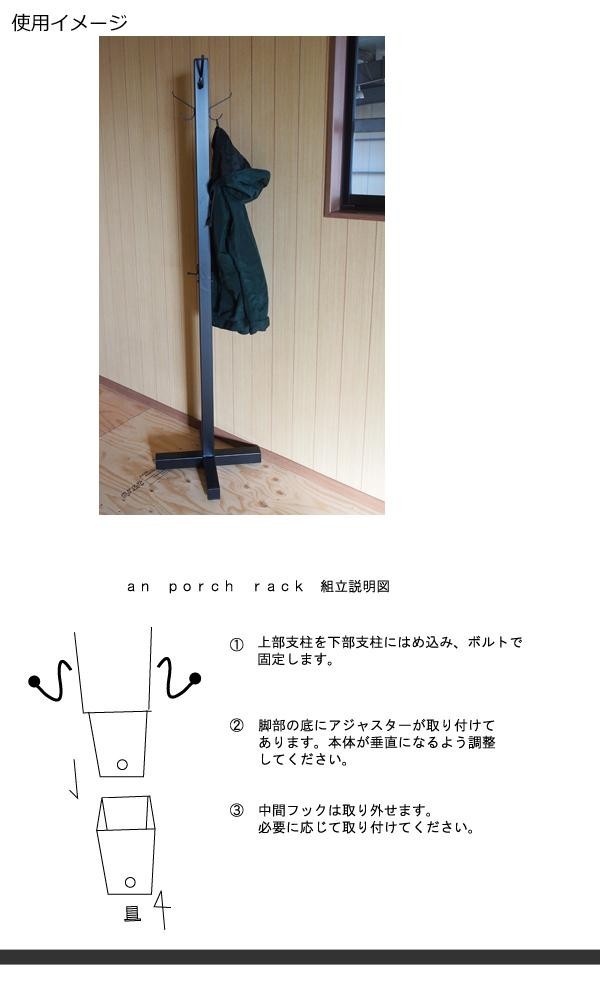 | セレクトショップで見かけるような無骨なポーチラック。 |