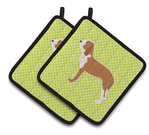 Caroline's Treasures Spanish Hound Checkerboard green Pair of Pot Holders BB3791PTHD, 7.5HX7.5W, Multicolor