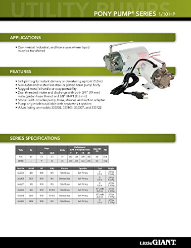 Little Giant 555203 365S 12 VDC 300 GPH Non Submersible Utility Pump