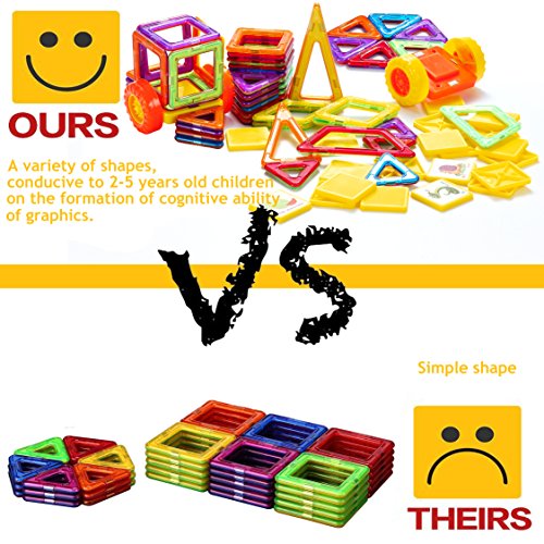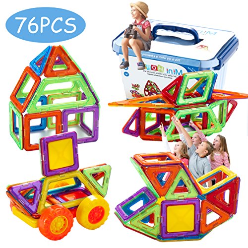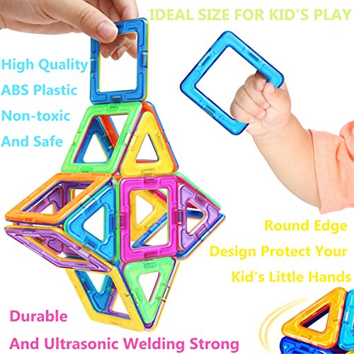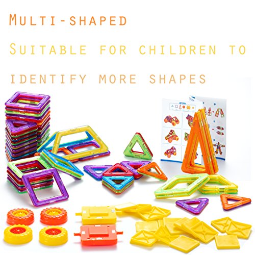 -. Feature : 【Great gift for ages 3-12】: This building toys set can be combined into many patterns, such as dogs, planes and other construction. Kids learn colors and shapes while playing, develop their creativity and mind in new ways. / 【Activities to build STEM/math skills】:This building set builds Fine Motor Skills in toddlers and inspires imagination and an interest in science, engineering and design in Children. Combines creative building fun with exposure to early engineering/math. Best Educational stacking kits for your boys and girls. / 【Safe & More Fun】: Only non-toxic ABS plastic food grade material is used; Smooth edge of each tile will never hurt children's little hands. / 【High quality & Affordable】: Totally 76pcs: including 20*triangle, 20*square, 4*rhombus, 4*acute triangle, 2*trapezium, 20*small square, 4*wheel, 2*car base, 1*booklet. Each magnetic component has a different random color. / 【Easy Clean Up】: Powerful magnet that instantly connect makes it easy to play. No worry of clean up after play, you can gather them easily because they're magnetic, and then store them into the storage box.