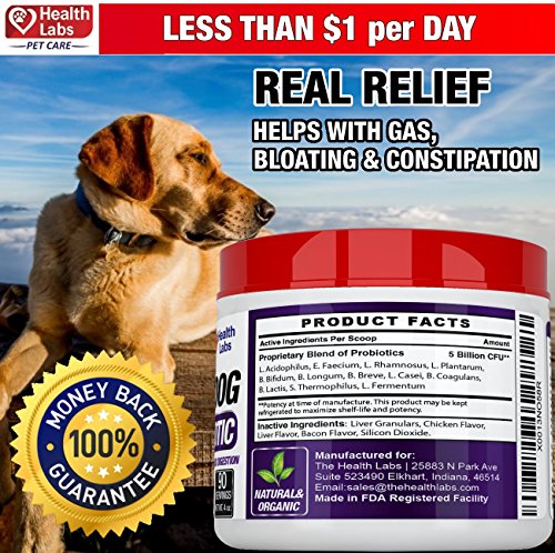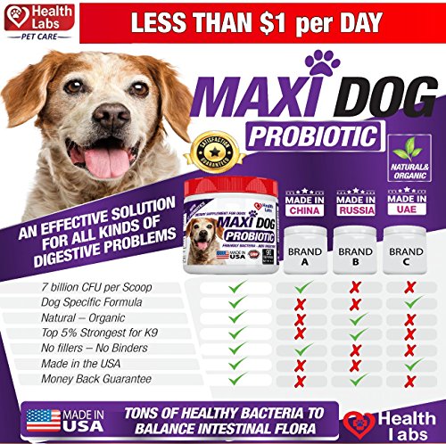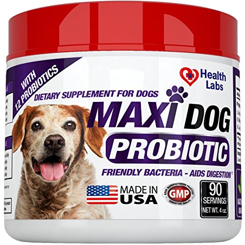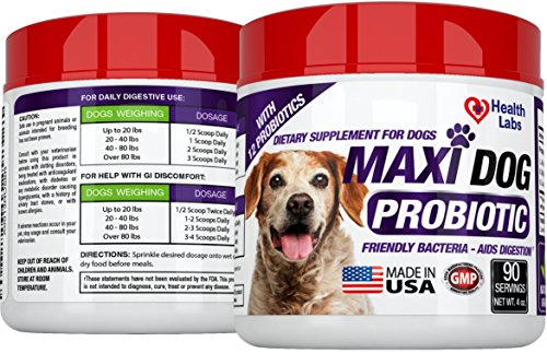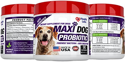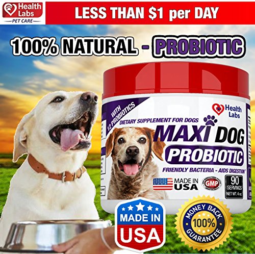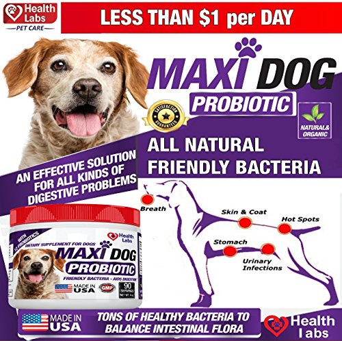 -. Feature : THE HEALTH LABS IS A FRIENDLY FAMILY OWNED COMPANY started out of our love for our beautiful Spaniel, Bella. Our two previous pets were abused and abandoned rescues. To honor their memory we've committed to building a legacy of quality pet supplements. / 12 TYPES OF PROBIOTICS FOR DOGS DIARRHEA - 5 billion CFU's including L. Acidophilus, L. Plantarum, L. Lactis and B. Bifidum. No more upset stomach. Simply sP.R.Inkle over wet food once a day. Scoop included inside jar for accurate hassle-free dosage. / ULTIMATE CANINE PROBIOTIC FOR DOGS - Made in the USA under strict GMP practice, as defined and overseen by the FDA, this pure probiotic powder is an ideal treatment for shedding, scratching, gas and bloating, yeast, diarrhea or loose stools. / ALL NATURAL ANTIOXIDANT RICH ORGANIC FORMULA - Zero fillers, binders, preservatives or additives. Maxi Dog Probiotics contain healthy bacteria to balance intestinal flora. Great for fresher breath, healthy skin and coat, hot spot relief as well as stomach and urinary issues. / QUALITY ASSURANCE GUARANTEE - Maxi Dog Probiotic is specially formulated for your dog's needs. For added peace of mind, our pet supplements come with a Quality Assurance Guarantee. If you're not completely satisfied with the results of our acidophilus for dogs, simply contact us for a full refund - no questions asked.