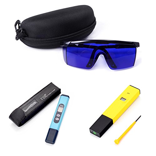 -. Title : HDE Grower's Hydroponic Accessory Tool Kit - Digital pH Meter and TDS Water Quality ppm Pen and Blue Lens Grow Room Polycarbonate Safety Glasses