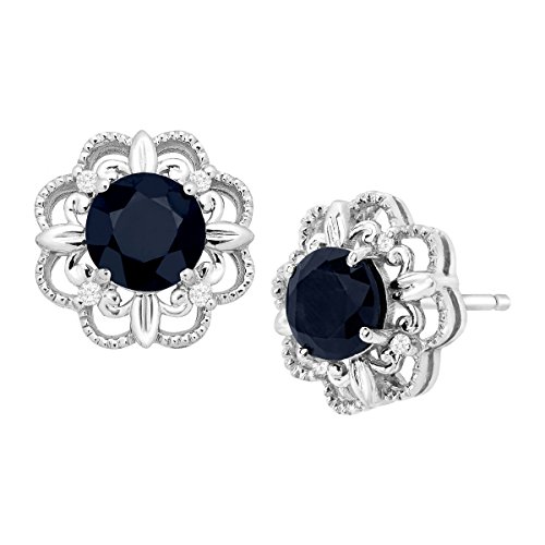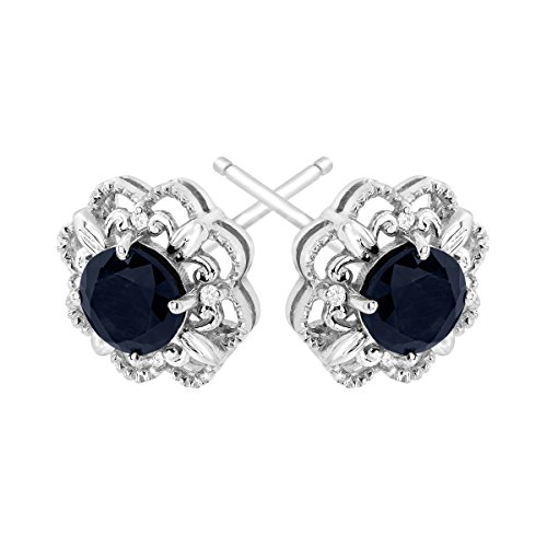 Get a dose of regal glam with these dark sapphire earrings. A total of 1 1/3 ct round-cut natural Kanchanaburi sapphires is surrounded by diamond accents in an intricate setting of 10K white gold. Pieces measure 3/8 by 3/8 inches.Feature