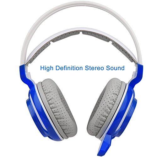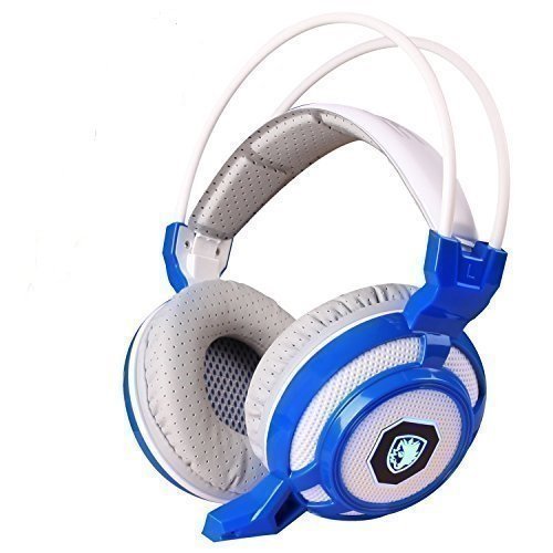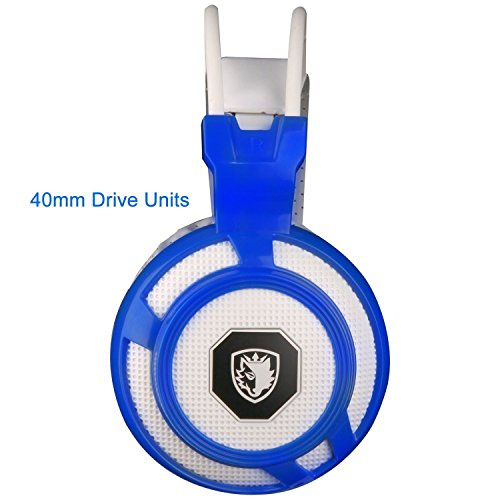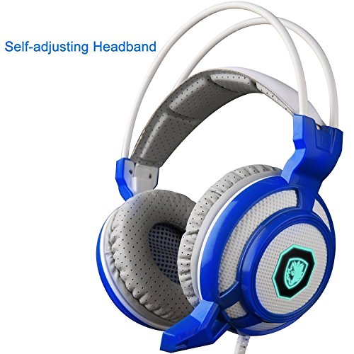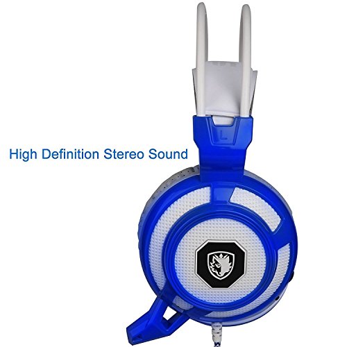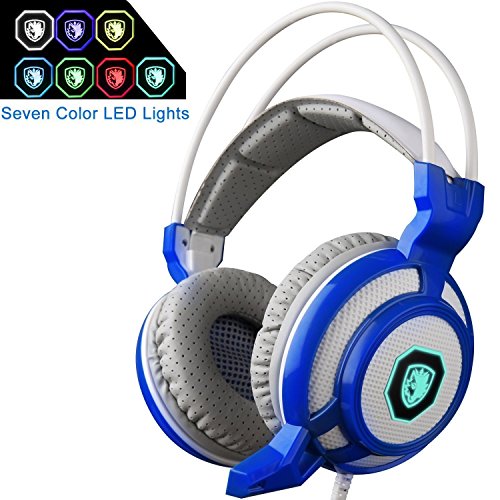 GT SADES SA905 7.1 Channel USB Wired Stereo Surround Sound Gaming Headset Over-Ear headband Headphone with Microphone Vibration LED Lights and Noise Canceling for PC (White&blue)