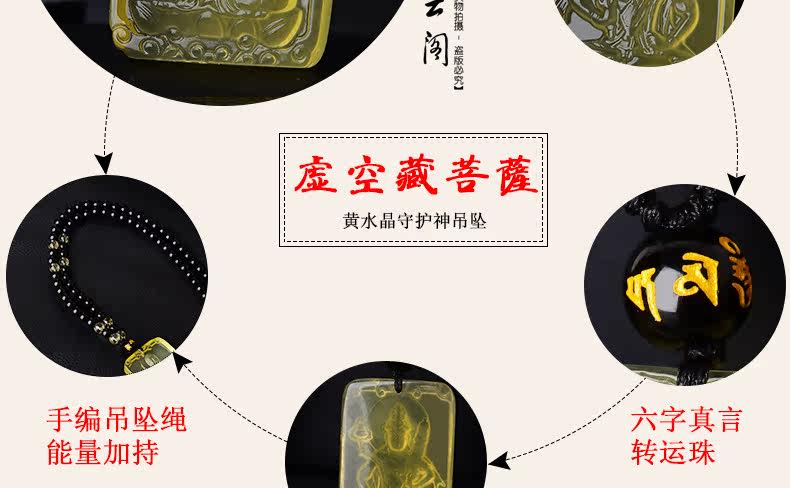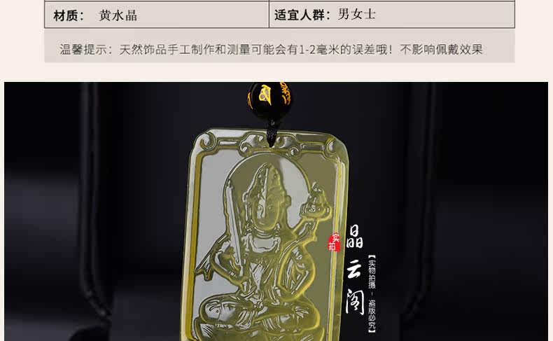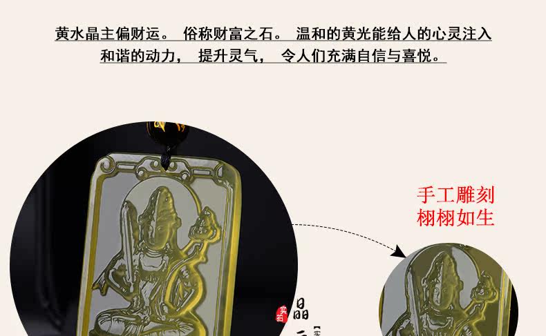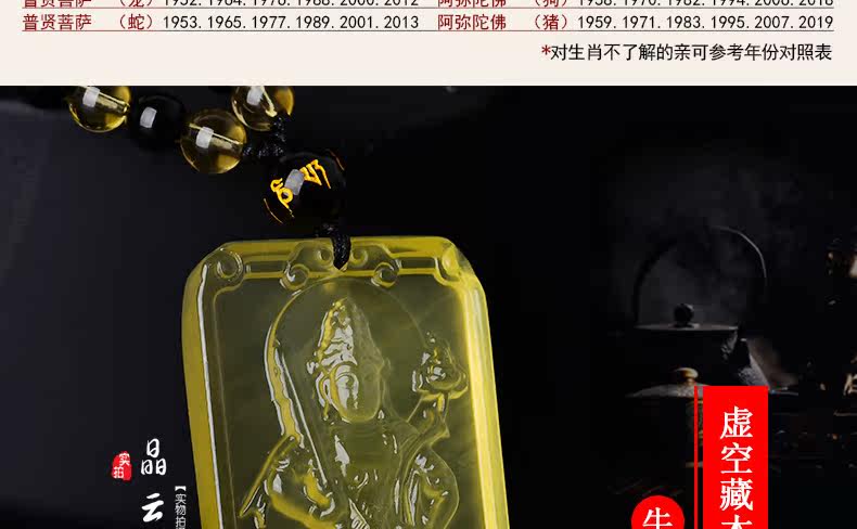 开光天然黄水晶虚空藏吊坠 生肖属牛属虎本命佛项链情侣款饰品