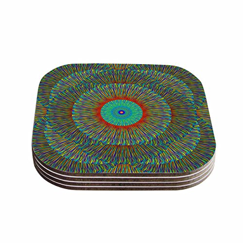 KESS InHouse Bruce Stanfield "Aztec" Teal Art Deco Coasters (Set of 4), 4 x 4", Multicolor