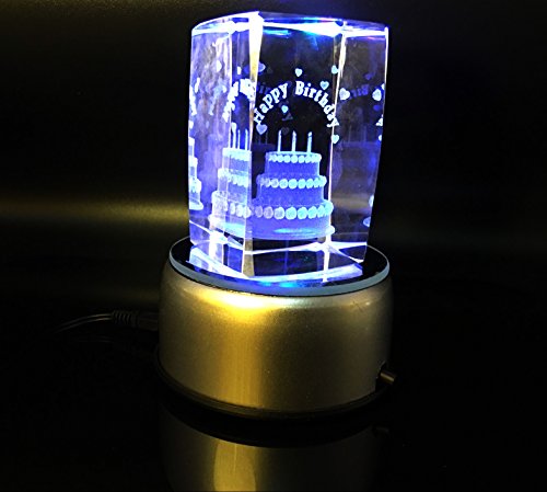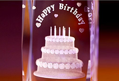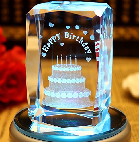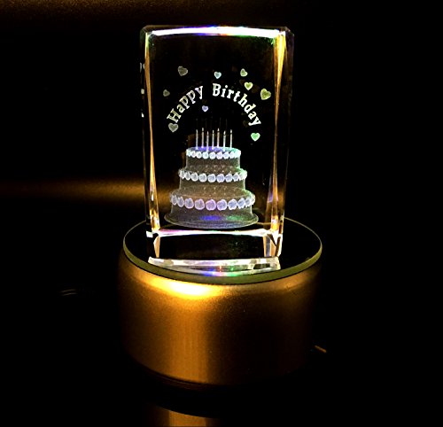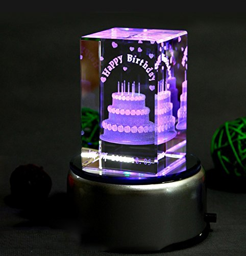 Mylifestyle 3D Birthday cake Paperweight(Laser Etched) in Crystal Glass Cube Birthday Gifts(No included LED base)(2.4x2.4x2.4") (Birthday cake)