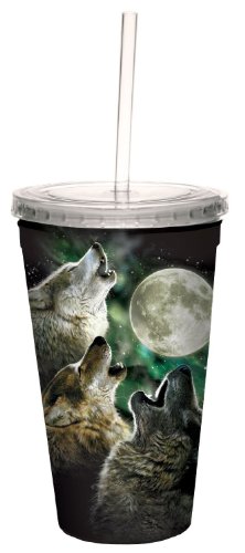 Tree-Free Greetings 80006 Three Wolf Moon Collectible Art Double Wall Cool Cup with Straw, 16-Ounce, Multicolored