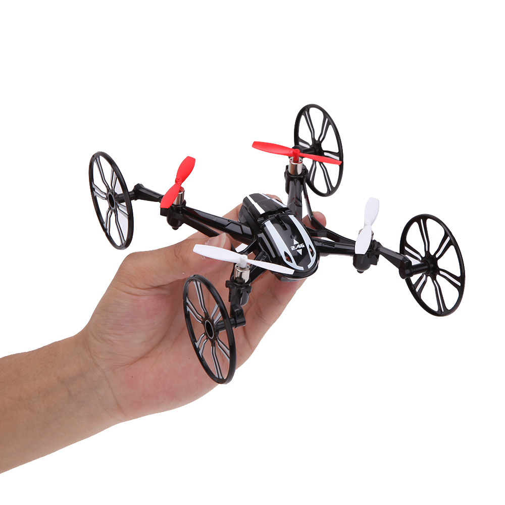 LS-116 is equipped with a 2.4G 4CH transmitter and a 6-Axis gyro for your easy and stable control, 4 combinations optional for air-ground amphibious use, and colorful led lights to fly in the dark, which is really a great flight combination. Moreover, it is fantastic with functions of high/mid/low speed switch mode, ground mode, headless mode and flip mode. More detailed product information, please refer to the English manual.