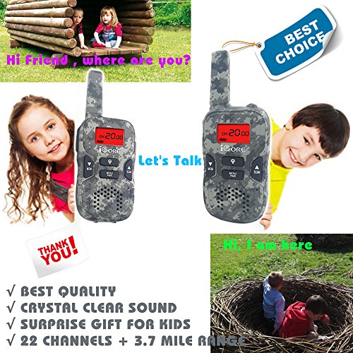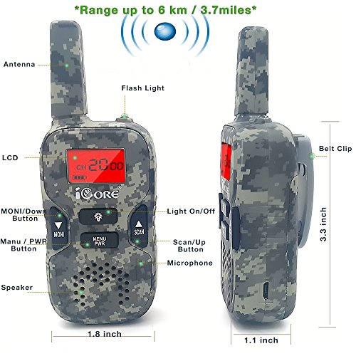 ✔ No signal? No problem. Distance is no issue with the iCore Walkie Talkies for kids! Its built-in 3.7miles range makes communicating with your teammates over long distances easy. These kids walkie talkies deliver crystal clear audio in any situation you bring it in.