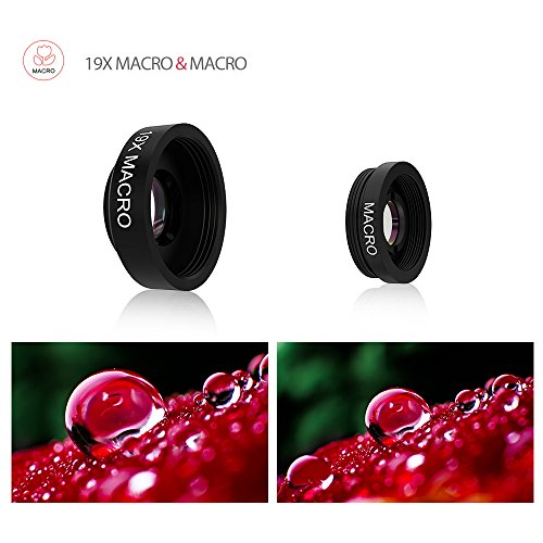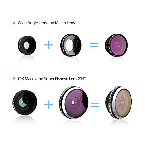 Wide angle and macro lens,super fisheye and 19X macro lens in a 2 in 1 set: These two small lenses are screwed together for easy storage. To use the wide angle, simply attach both lenses to the case provided. To use the macro lens, simply unscrew the wide angle lens