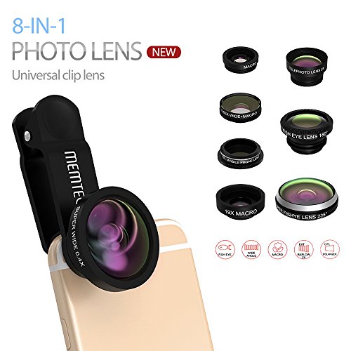 Eight great lenses in one kit: The 235°super fisheye, 19X Macro Lens, 0.4x Super Wide Angle Lens, 180° fisheye,EXT barlow 2X, CPL polarizer, macro and 0.65X wide angle lenses give you an array of shooting options to help you enhance your mobile photography