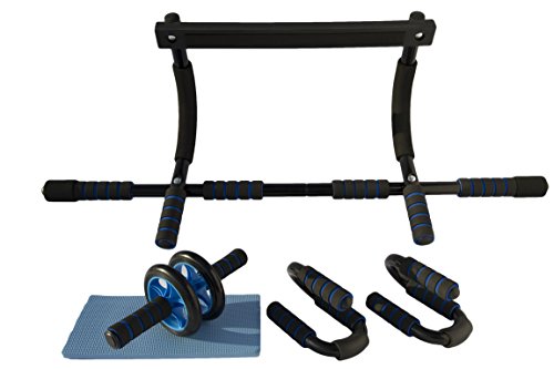 DOORWAY PULL UP BAR PUSH UP BARS AND AB WHEEL HOME EXERCISE EQUIPMENT FOR MEN WOMEN AND YOUNG ADULTS BUILD POWER STRENGTH AND SEX APPEAL WITH FBD 101'S UPPER BODY BLASTER "LET US GET YOU FIT"